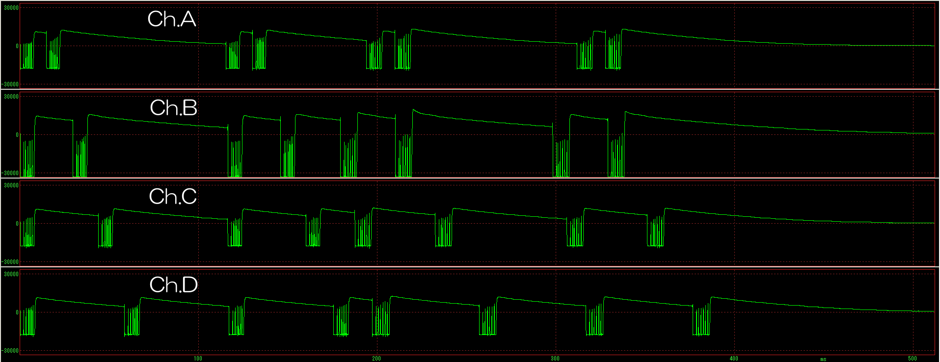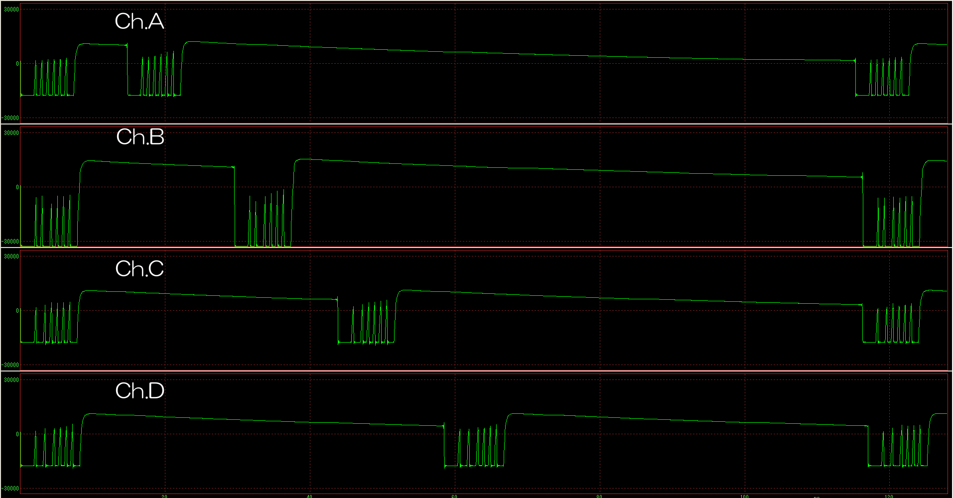 下図は各バンド(A~D)の前進ボタン押下時の信号です。