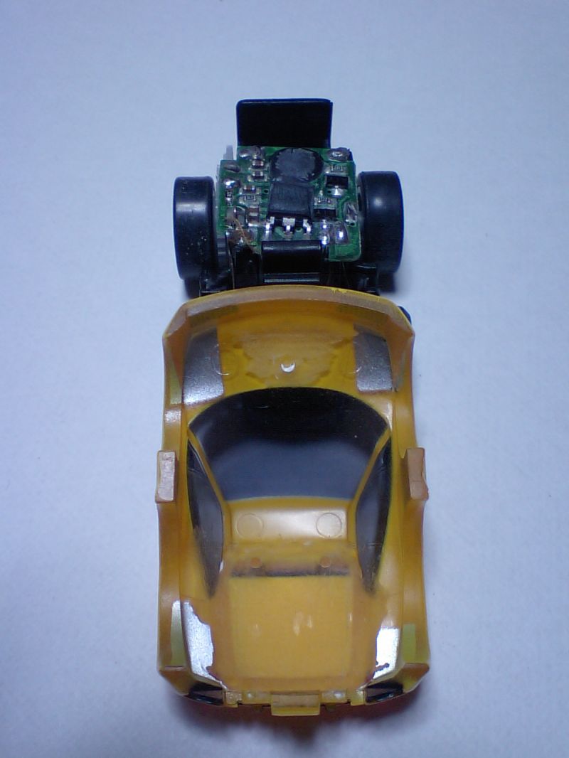 チョロQと比べると、前輪、後輪とも、フェンダー部分が浮いているのが分かります。